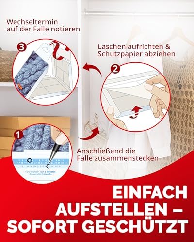 • Hochwirksame Mottenfallen: Effektive Bekämpfung von Kleidermotten und deren Larven für langanhaltenden Schutz.