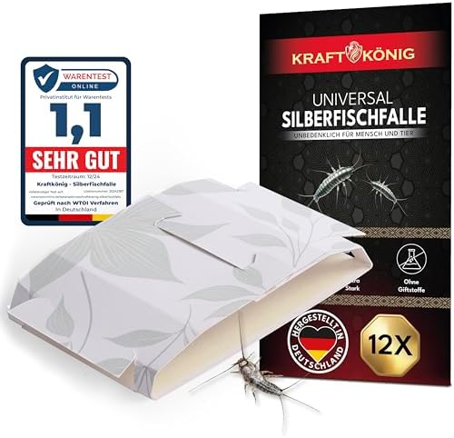 KRAFTKÖNIG Premium Silberfischfalle - Effektive 3X12 Klebefalle zur Bekämpfung von Silberfischen im HausKRAFTKÖNIG Premium Silberfischfalle – Effektive 3X12 Klebefalle zur Bekämpfung von Silberfischen im Haus