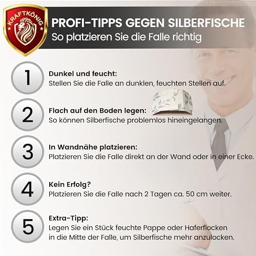 KRAFTKÖNIG Premium Silberfischfalle – Effektive 3X12 Klebefalle zur Bekämpfung von Silberfischen im Haus