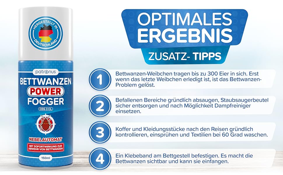 • Umfassender Schutz: Bekämpfen Sie Bettwanzen an der Wurzel mit unserer effektiven Fogger-Technologie.