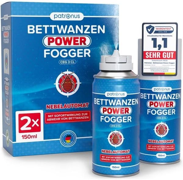 Patronus Bettwanzen Power Fogger CEG 3 CL - 2x 150ml effektiver Vernebler für sofortige Bettwanzen-Abwehr in schwer errePatronus Bettwanzen Power Fogger CEG 3 CL – 2x 150ml effektiver Vernebler für sofortige Bettwanzen-Abwehr in schwer erre
