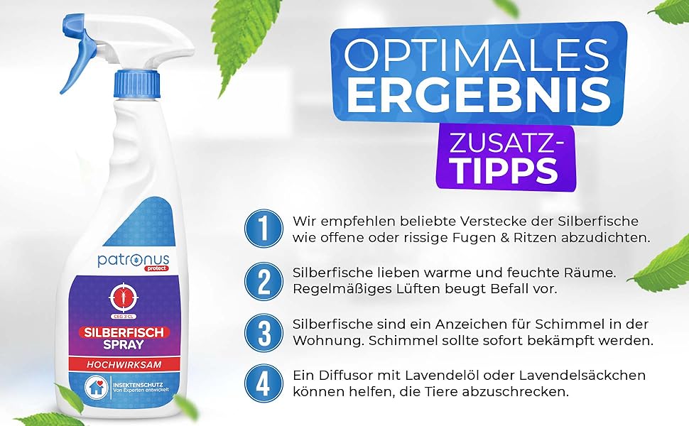 • Sofortige Wirkung: Patronus Silberfischspray eliminiert Silberfische sofort und verhindert erneute Infektionen.