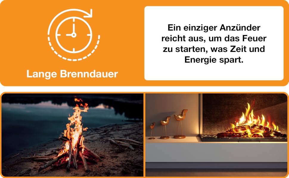 • Genießen Sie gemütliche Abende: Entfachen Sie das Feuer mit Leichtigkeit und genießen Sie unvergessliche Momente mit Familie und Freunden.