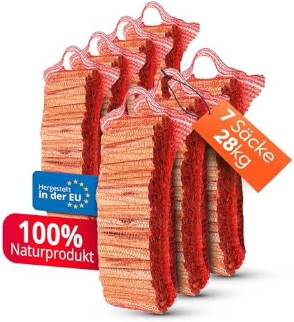 Sie erhalten unser Premium Zündholz in praktischen 28 kg Säcken, die bequem in 7 Holzsäcke zu je 4 kg unterteilt sind. Jeder 4 kg Sack ist in einem Netzsack verpackt und mit einem Tragegriff ausgestattet, was den Transport erheblich erleichtert. Diese durchdachte Verpackung vereinfachen zudem die Lagerung und sorgt dafür, dass Ihr Zündholz immer griffbereit ist.