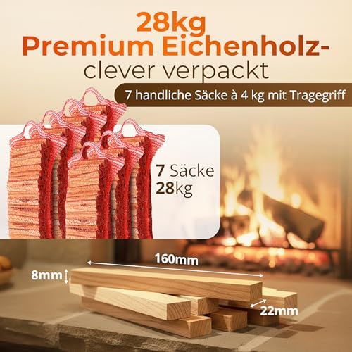 Premium 28 kg Brennholz – Eichenholz Anzünder für Grill und Kamin – 100% biologisch und nachhaltig, ideal für gemütliche