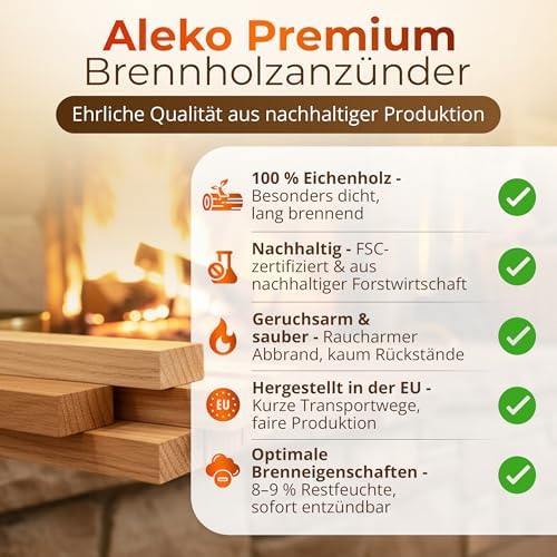 • Zuverlässiger Partner: Vertrauen Sie auf Aleko Parkett für qualitativ hochwertiges und nachhaltiges Zündholz – ideal für alle Feuerliebhaber.