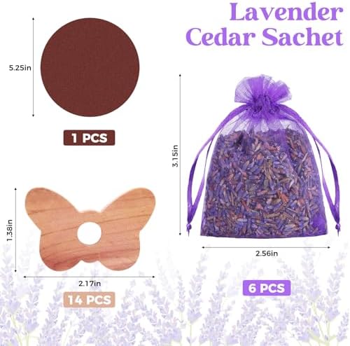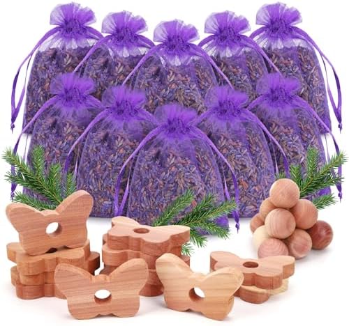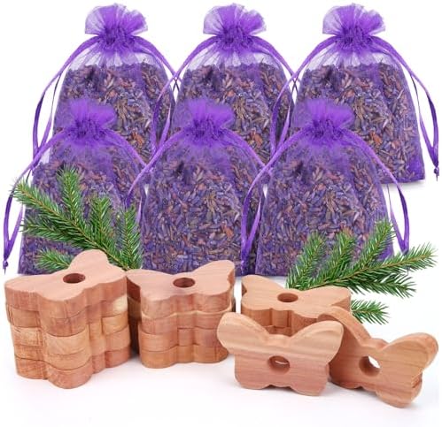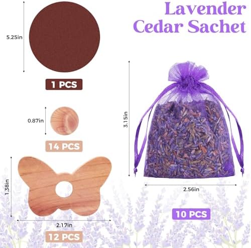 Entdecken Sie die optimale Aufbewahrungslösung mit unserem Set von 10 Lavendelknospenbeuteln, 12 schmetterlingsförmigen Zedernholzstücken und 14 kugelförmigen Zedernholzobjekten. Diese Kombination bietet nicht nur einen atemberaubenden visuellen Eindruck, sondern sorgt auch für einen langanhaltenden, frischen Duft in Ihren Räumen. Die getrockneten Lavendelknospen stammen aus den schottischen Highlands und sind bekannt für ihren intensiven und beruhigenden Duft.